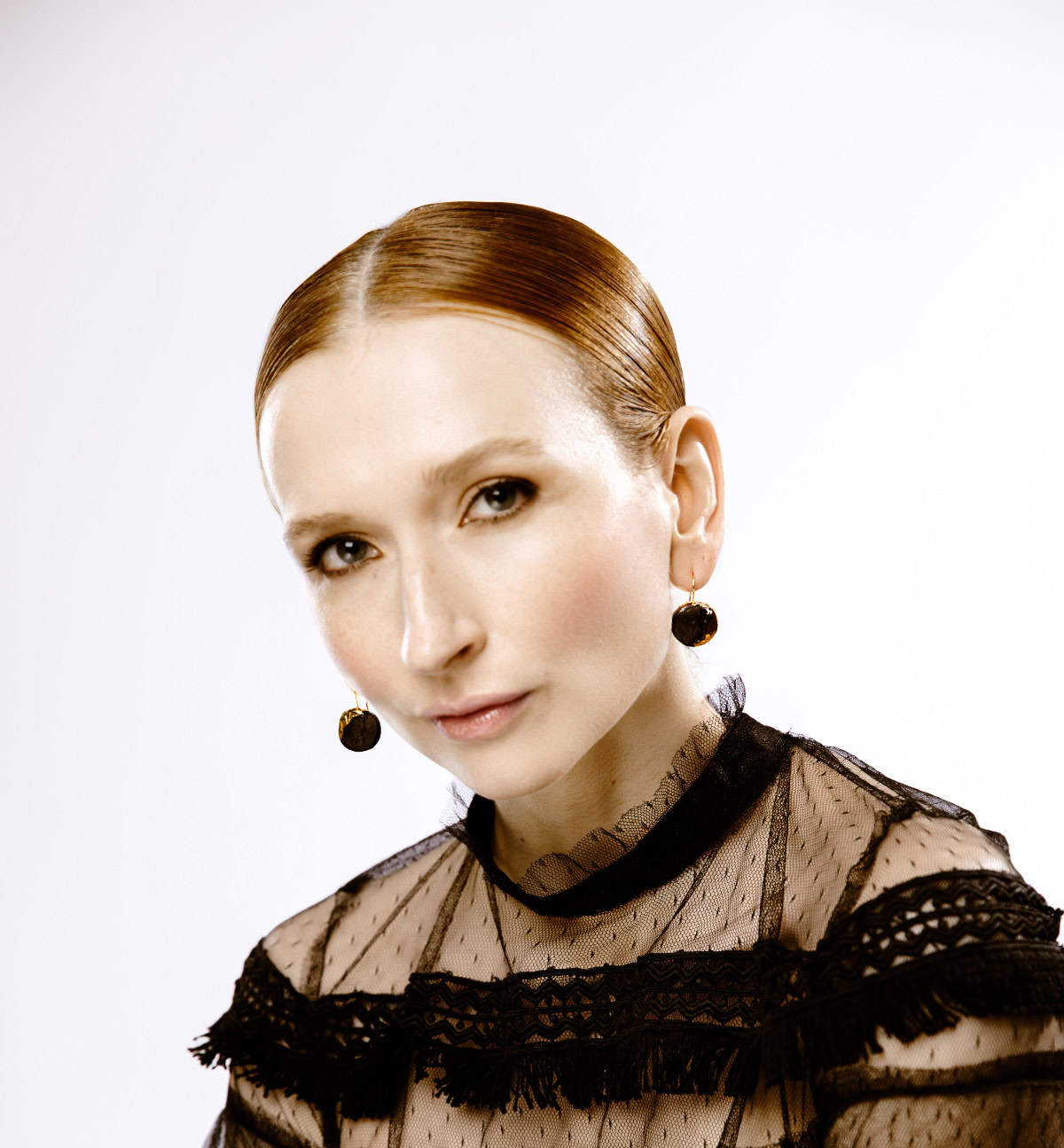 The Black Gold Round 44 – a round earring crafted from deep black porcelain, refined with 24-karat ceramic gold and finished with a 24-karat gold-plated 925 sterling silver hook.