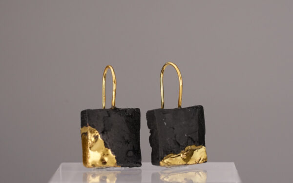 The Black Gold Square 42 – a rectangular earring crafted from deep black porcelain, refined with 24-karat ceramic gold and finished with a 24-karat gold-plated 925 sterling silver hook.