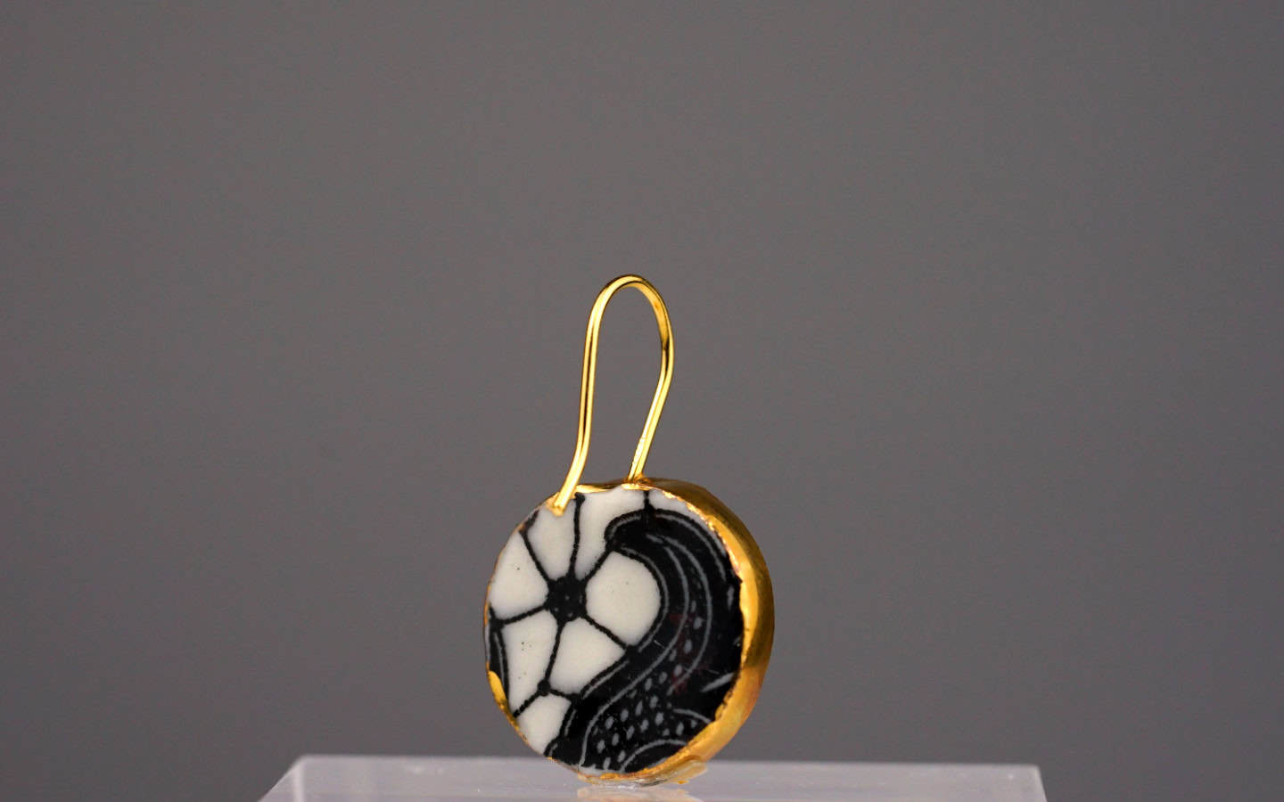The delicate black pattern, meticulously applied to the white porcelain, gives these earrings a timeless elegance. Each earring undergoes three kiln firings, ensuring a flawless finish that highlights every intricate detail.