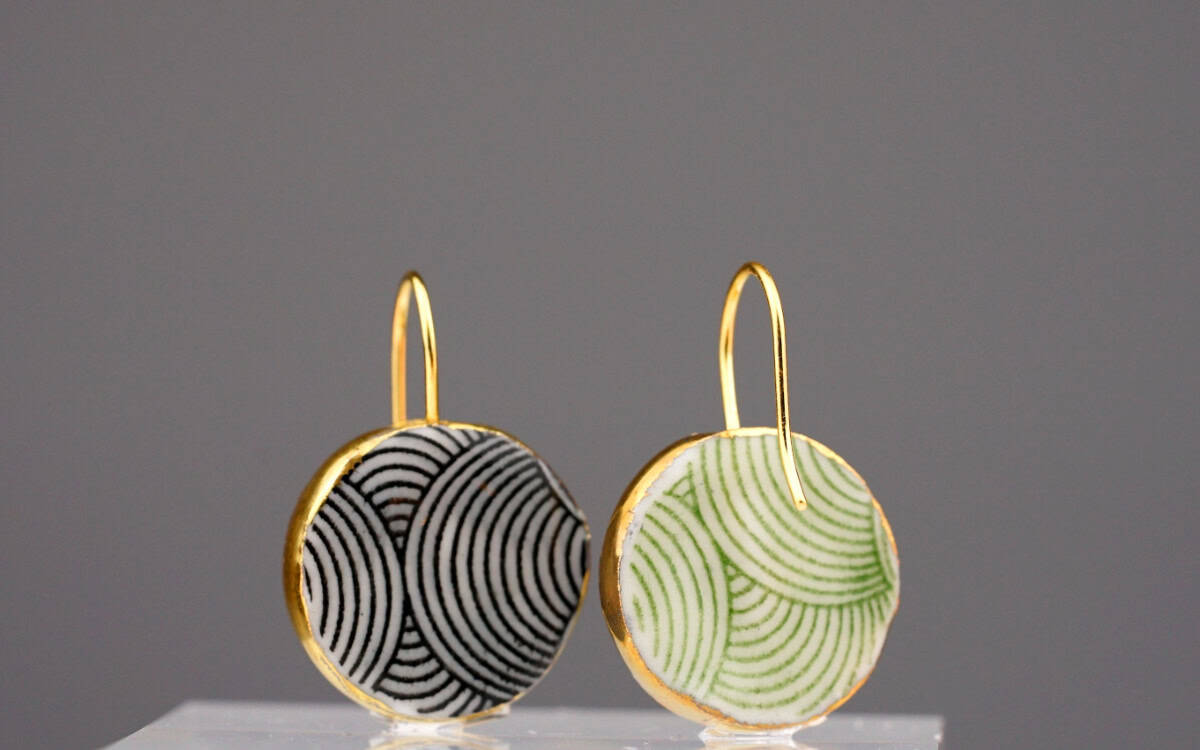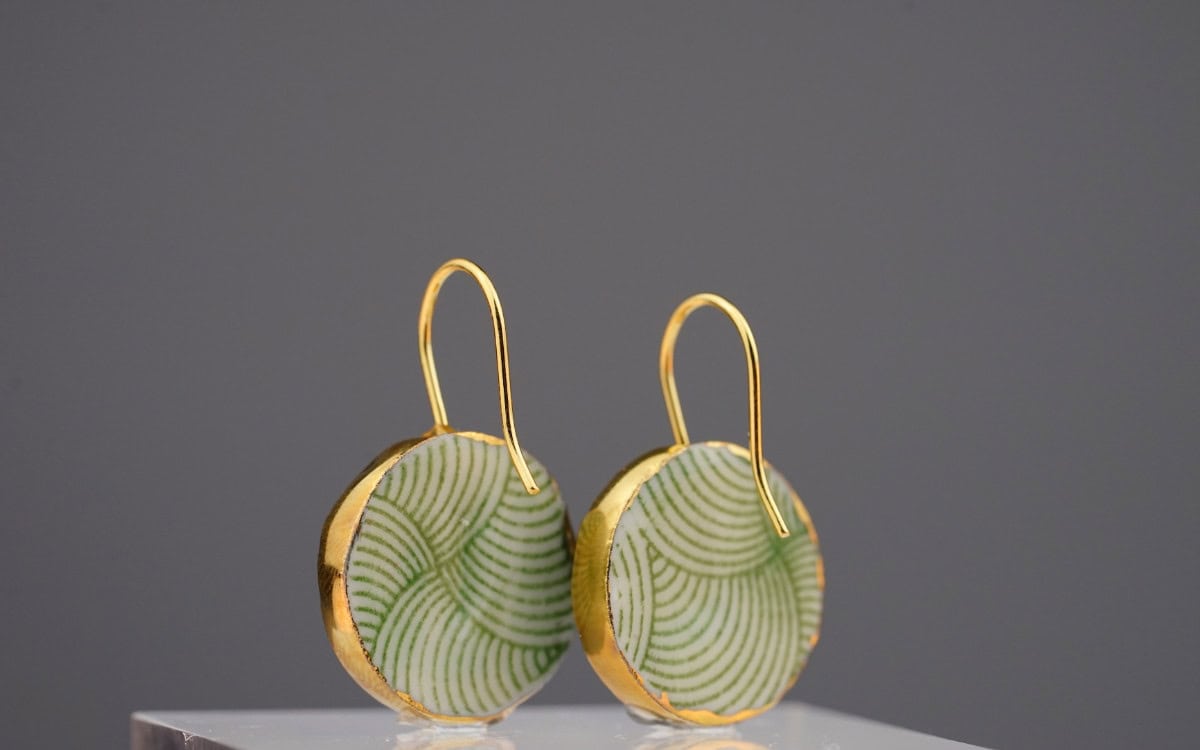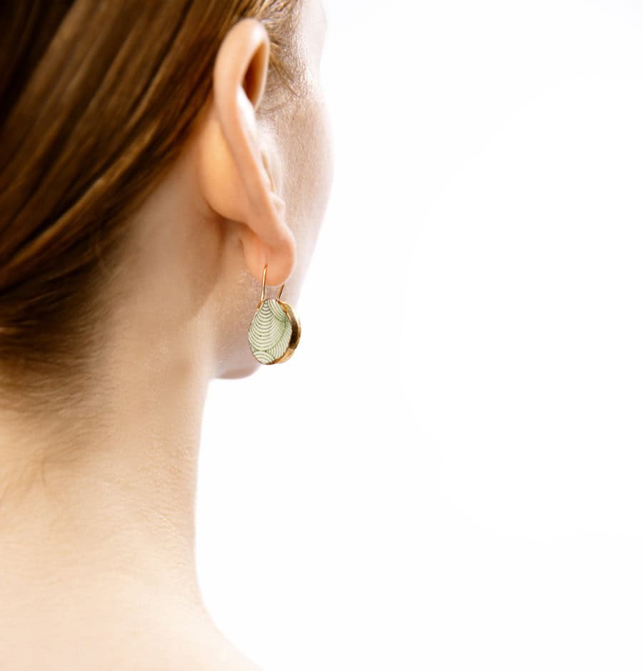 Green waves - Porzellan Ohrringe mit Gold