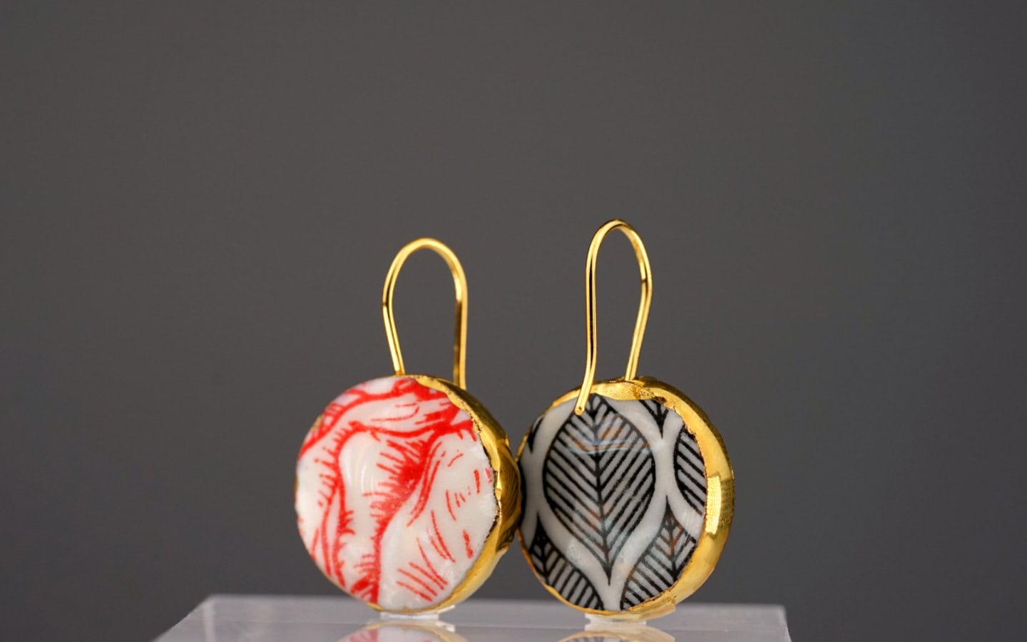 The porcelain and ceramic gold contain no nickel, and the earring hooks are made from 925 sterling silver, refined with 24-carat gold.