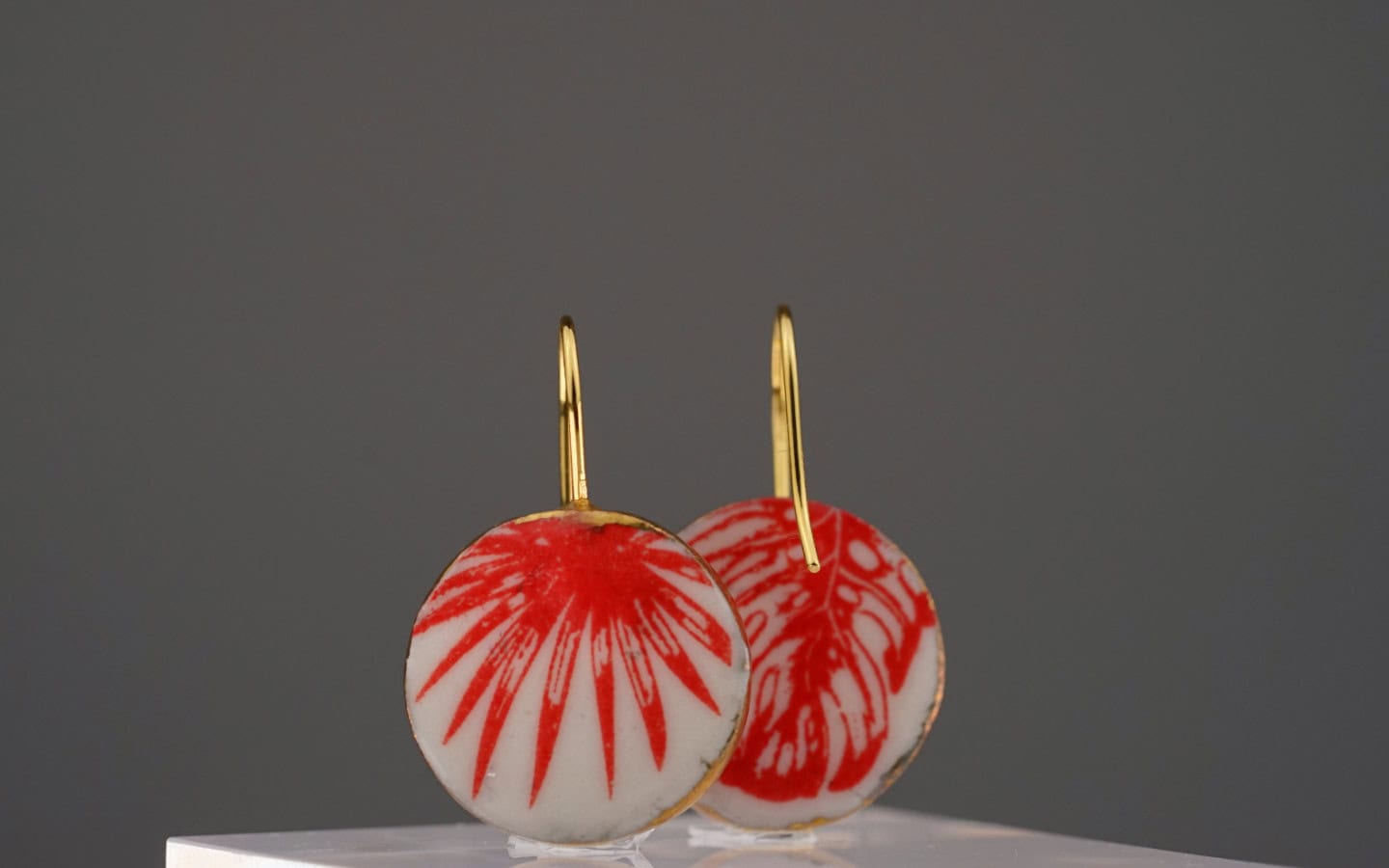 With deep red leaves spreading across fine white porcelain, the Ruby Leaf earrings capture the beauty of changing seasons.