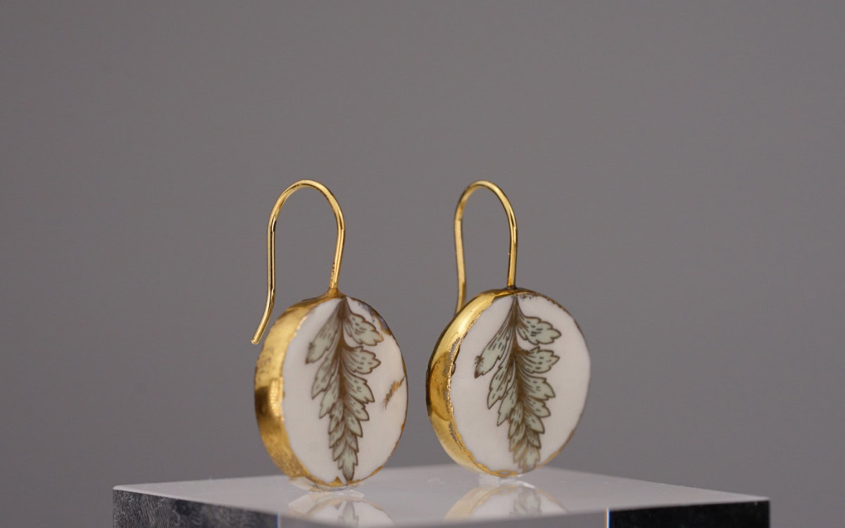 The porcelain and ceramic gold contain no nickel, and the earring hooks are made from 925 sterling silver, refined with 24-carat gold.