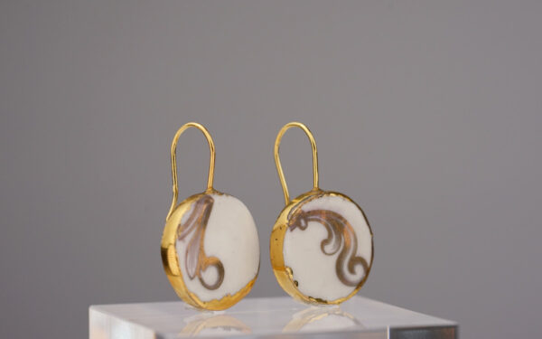 Earring made of white porcelain, decorated on both sides with 24 K ceramic gold and fully rimmed in gold. 925 silver hook. Handcrafted and sustainably made in Europe.